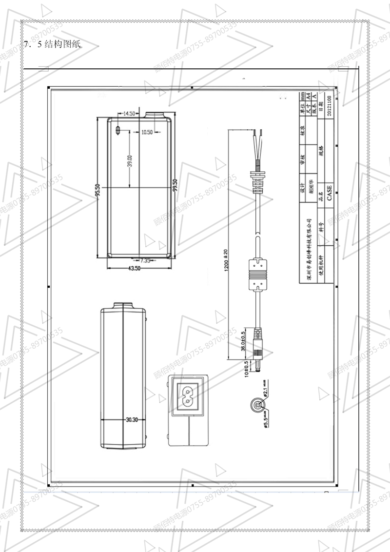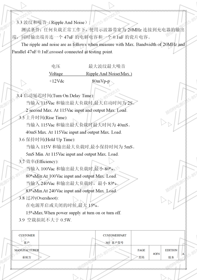12V1.25A電源適配器規(guī)格書(桌面式)