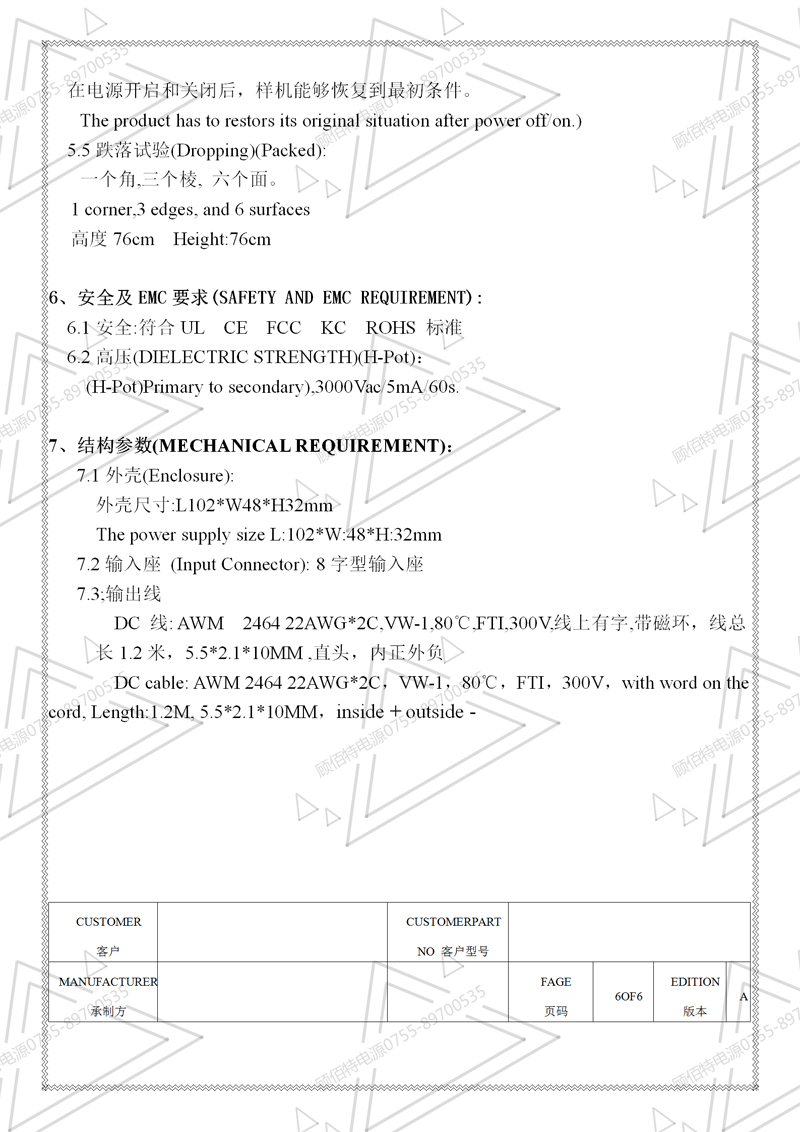 24V6A電源適配器帶PFC電路規(guī)格書(新模具)